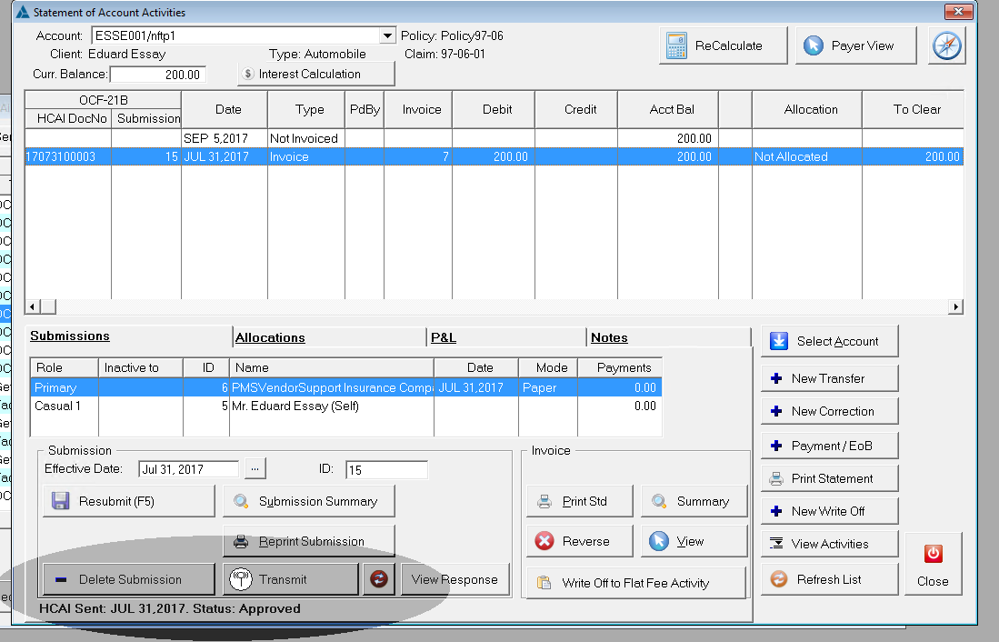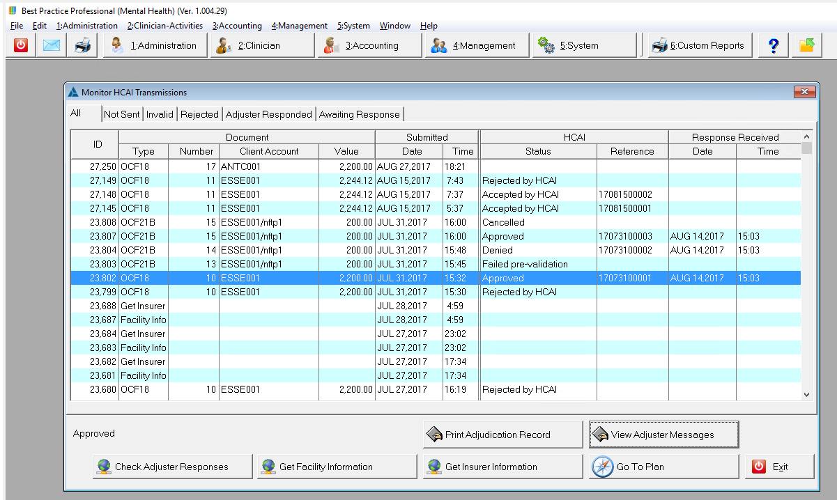 The list of submissions to HCAI with transmission status, validation and adjudication summaries.