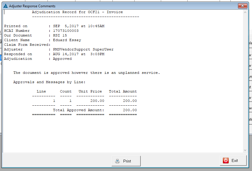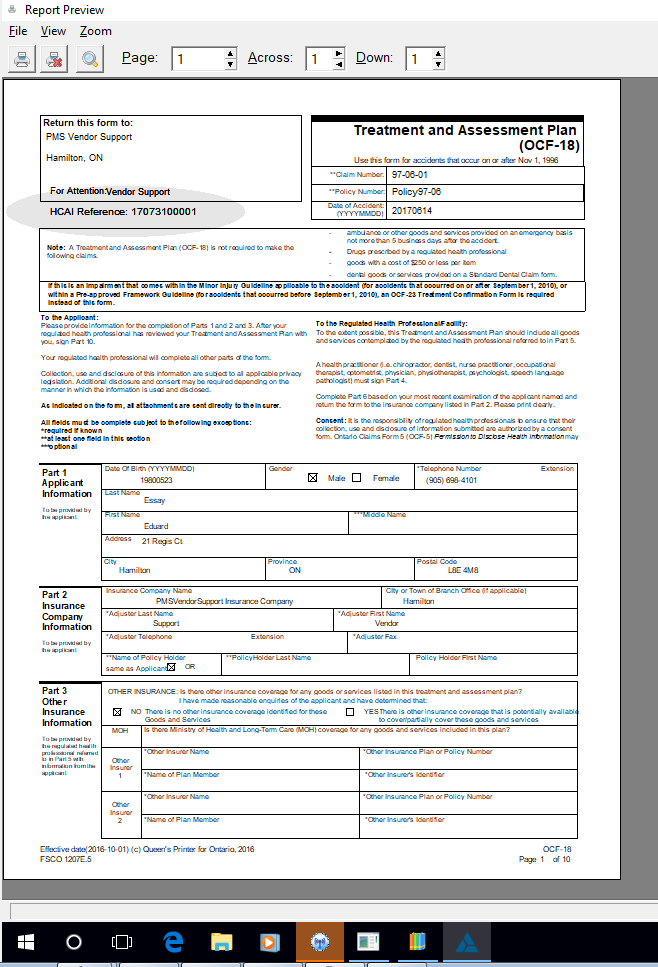 A printed OCF18 showing the HCAI Reference number of the approval.