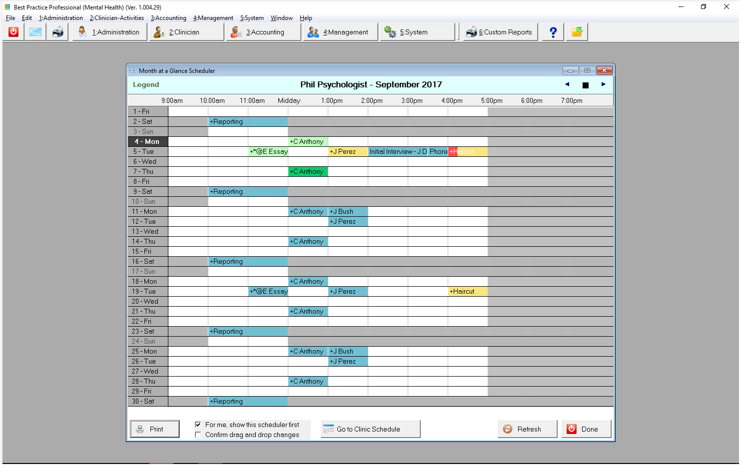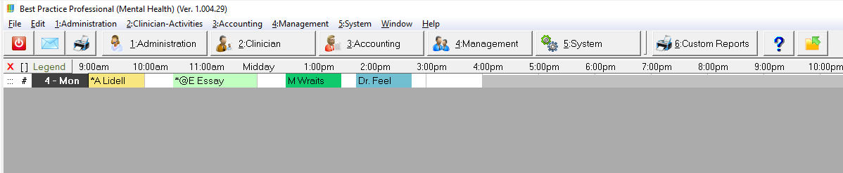 The Clinic Scheduler that Reception will likely keep open most of the time.